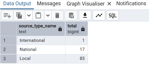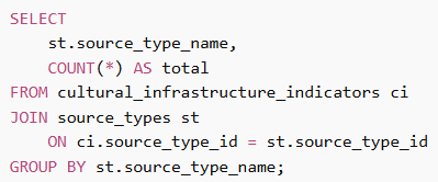 This query shows how indicators are distributed across different source types, supporting data reliability assessment.