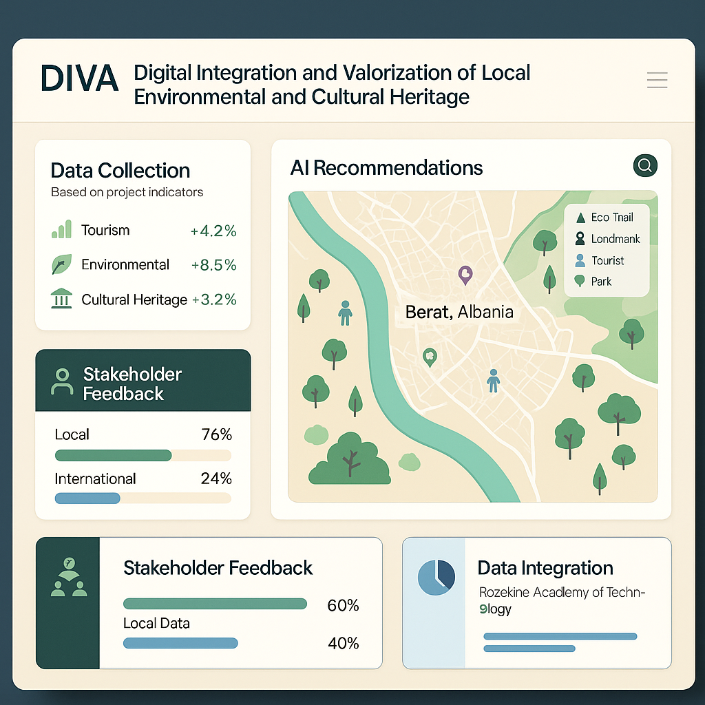 The DIVA Project is a groundbreaking initiative dedicated to safeguarding Berat’s rich cultural and environmental heritage. By leveraging digital technologies, the project aims to create a sustainable future for the region. It bridges the gap between research, technology, and local identity, fostering collaboration among academia, public institutions, and private sectors. Through its innovative platform, DIVA enhances urban management, cultural planning, and sustainability, ensuring that Berat remains a vibrant and thriving community.
