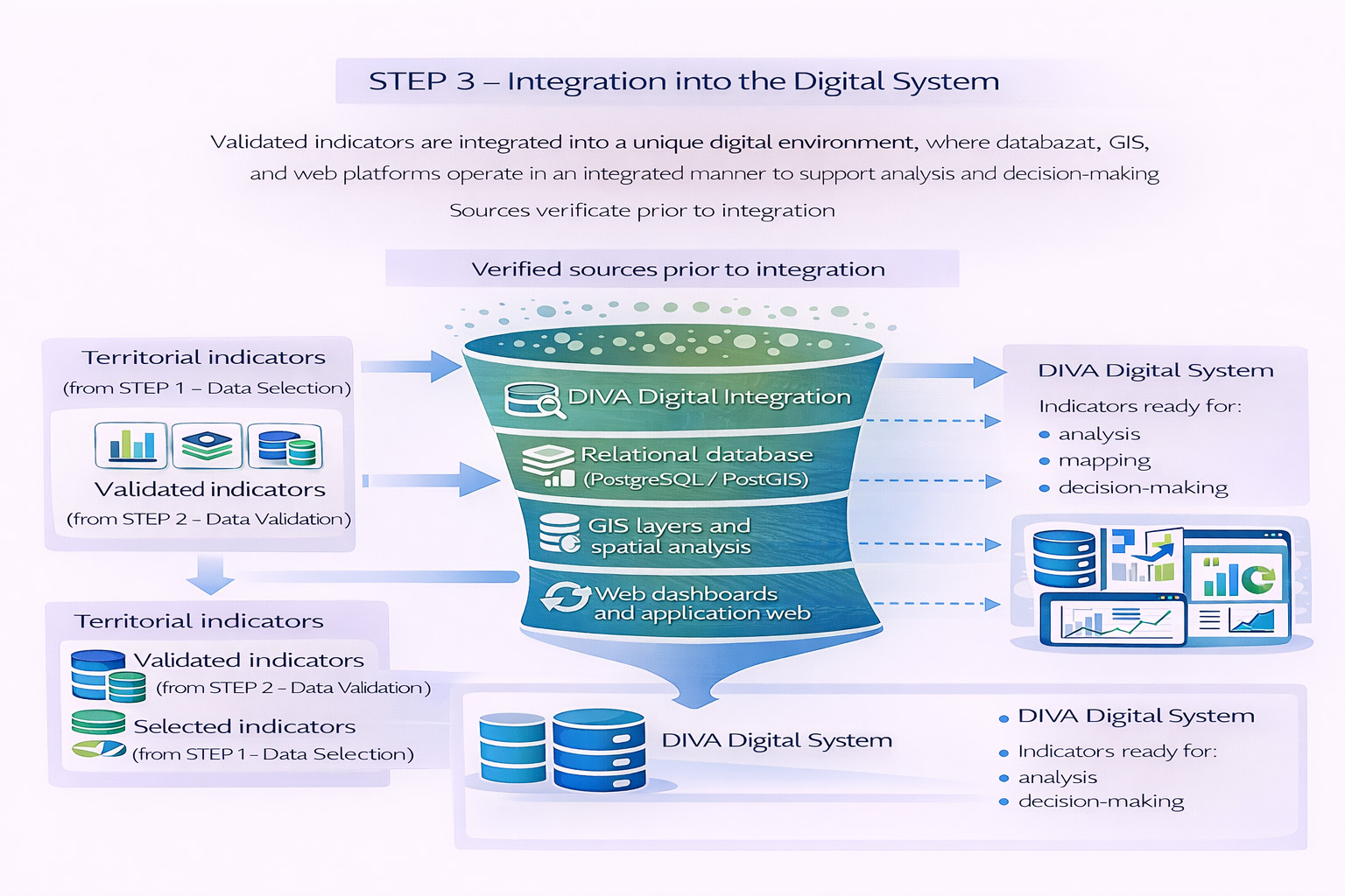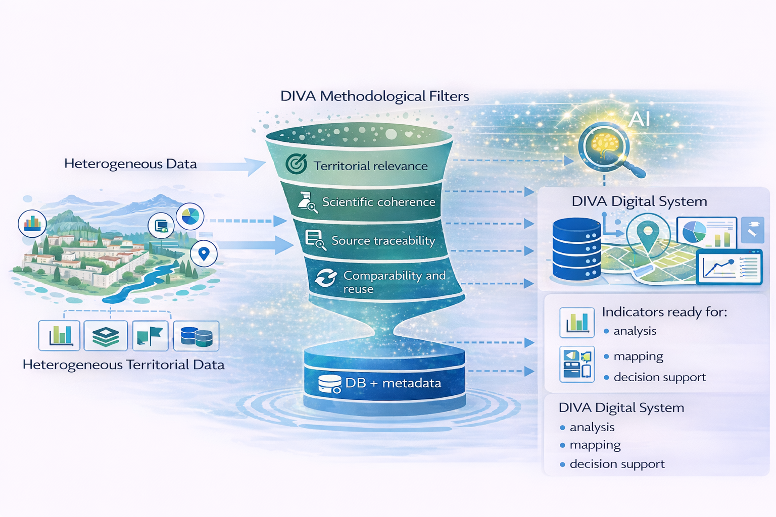 DIVA is not limited to data collection, but defines a structured, traceable, and replicable process that connects data, territory, and public policies through open digital tools.