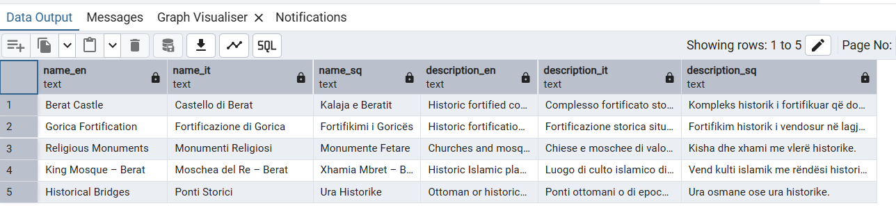This architecture enables multilingual support (EN / IT / SQ) while preserving data consistency, allowing the same dataset to be accessed, interpreted, and visualized across different linguistic contexts.