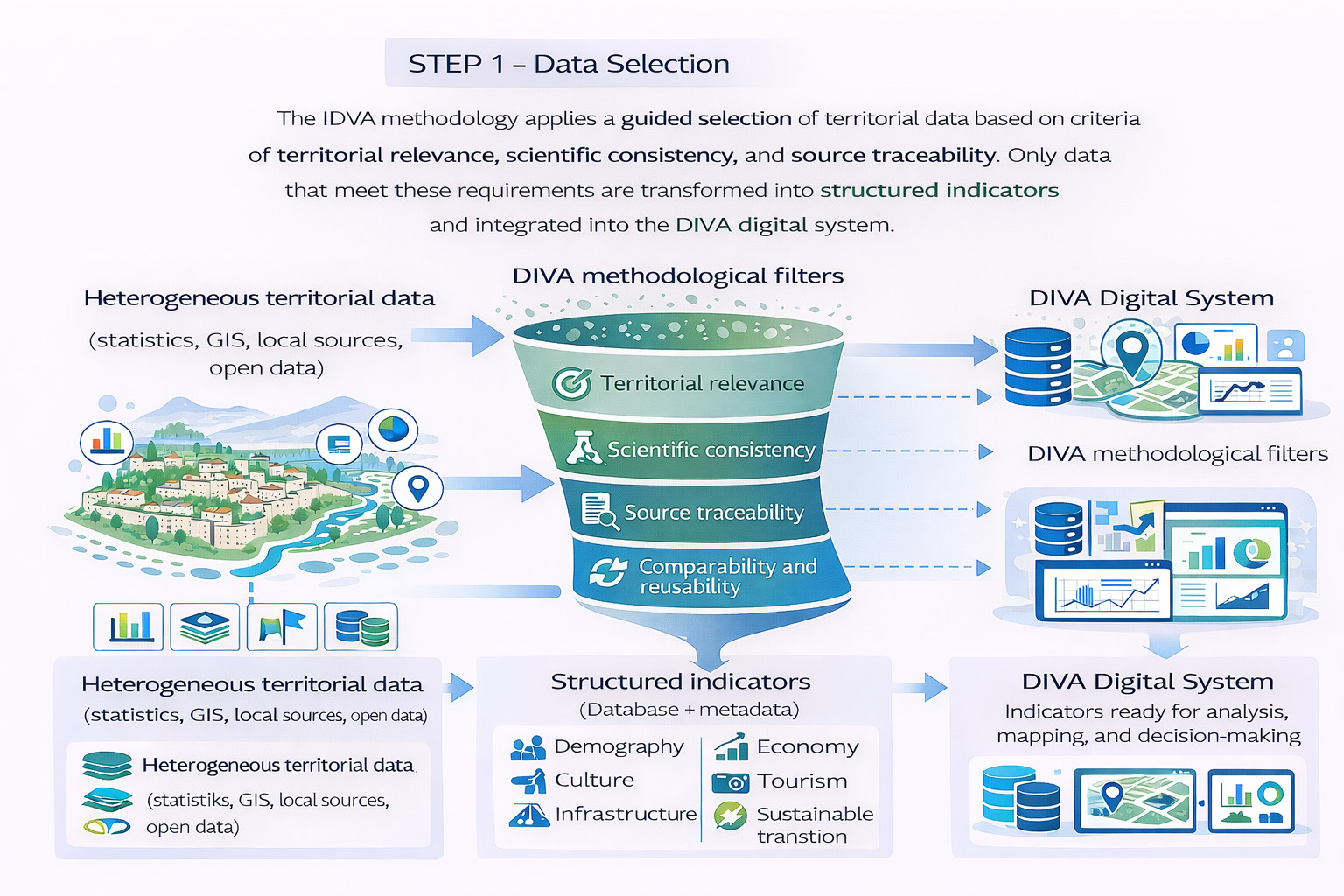 Workshop II represents a central milestone of the DIVA project. It is not a presentation of a software, but a demonstration of the working method through which the territory is analytically constructed starting from data. Before maps, before dashboard, before decisions, there is data.